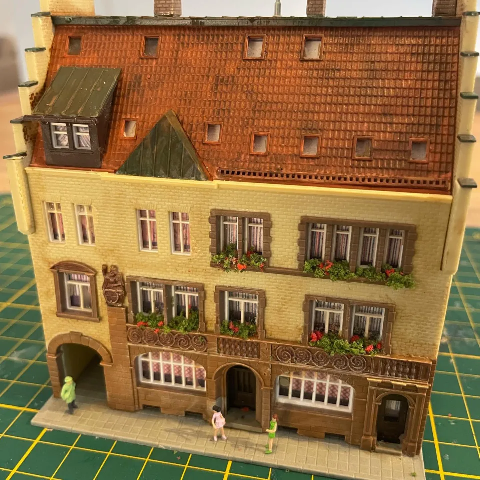 An existing model? The first step is to clean the model. To do this, use an (old) soft brush and a small hobby knife. Make the building dust-free. Otherwise, the paint will mix with the dust and create unnatural “clumps” in the paintwork. Then a sharp knife is used to remove all irregularities from the model, including previously applied floral parts.