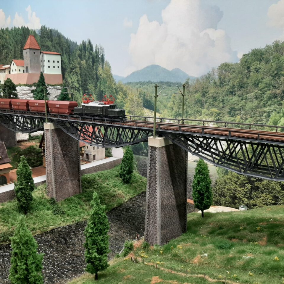 Een achtergrond met veel lucht, weinig bebouwing en veel groen werkt het beste. Dit past veelal goed bij de modelbaan.