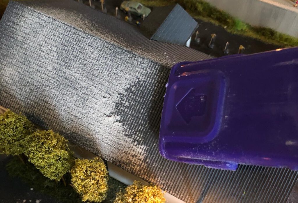 Leveranciers spelen daar op in door ‘sneeuw’ te maken die, volgens de verpakking, eenvoudig te verwijderen is. Ideaal om een deel van de treinbaan om te toveren tot een winterlandschap. Daarvoor werd sneeuw van Noch toegepast.